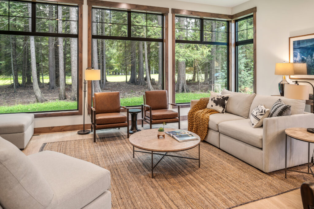 - Timeless Flexibility Neutral bases never compete with personal style or fleeting trends. Easily refresh your mountain modern home in Sandpoint by swapping accents—like vibrant throw pillows in deep forest greens or lake blues, bold artwork drawn from local scenery, textured wool rugs, or seasonal decor—without costly renovations. This adaptability suits North Idaho’s lifestyle perfectly: cozy layers for winter après-ski evenings at Schweitzer or lighter, breezy touches for summer days on Lake Pend Oreille.